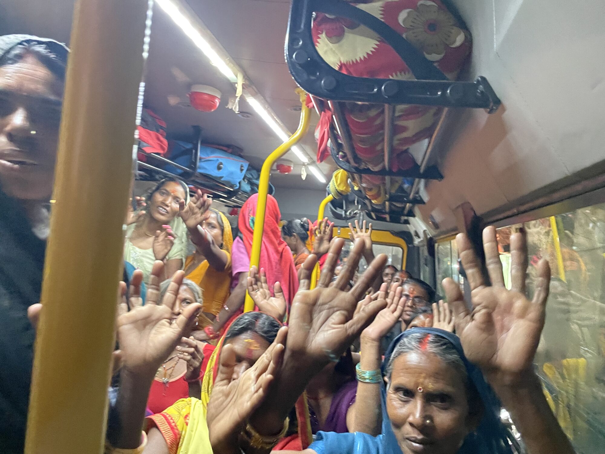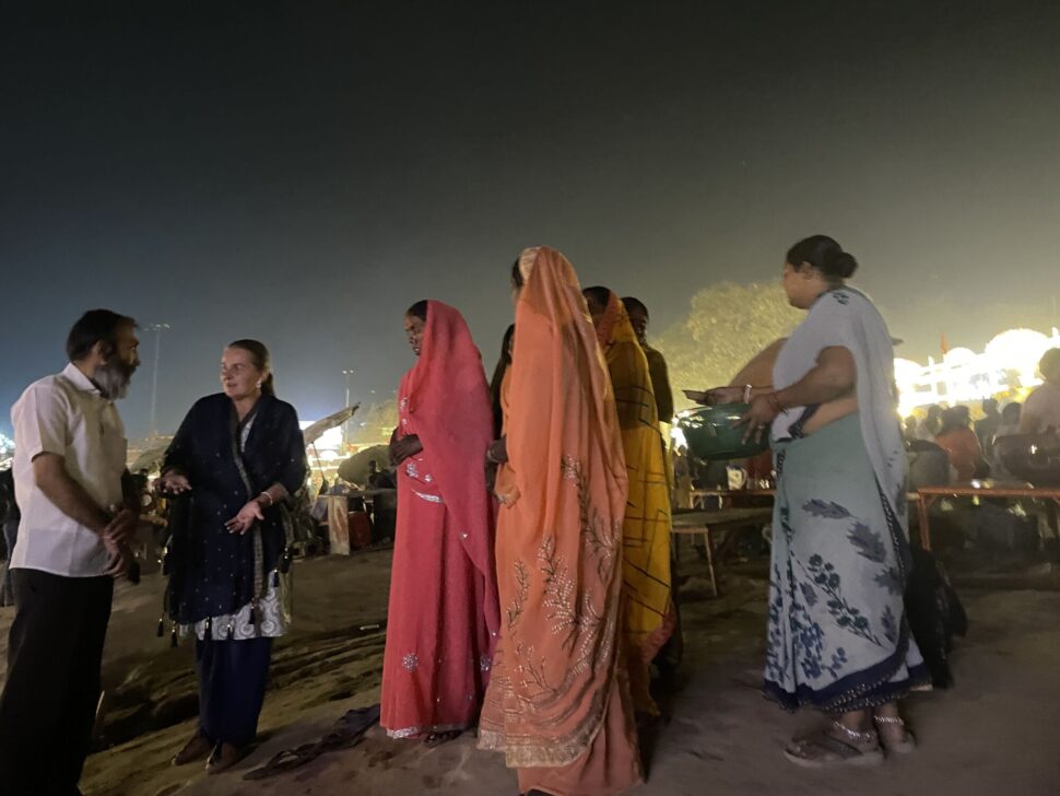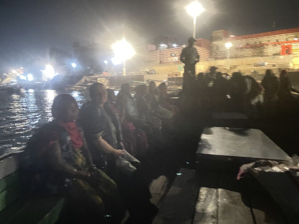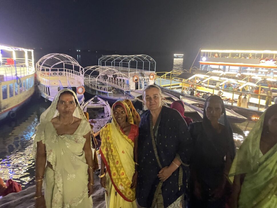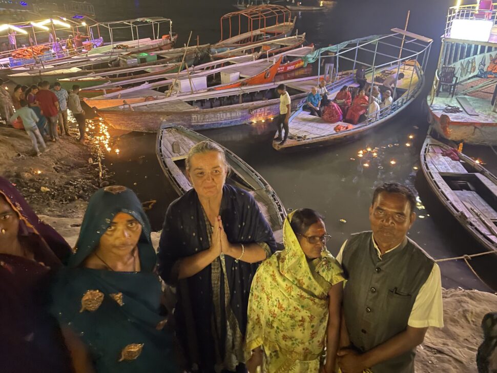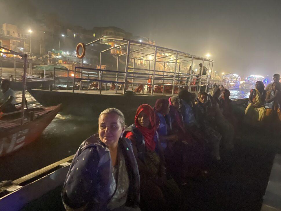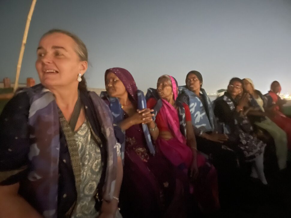 Tady se nám trochu vymknul z rukou počet. Dali jsme maximum 15 žen a přijelo 30 žen i jejich muži :-). Přijeli školním autobusem a vlastně to asi chápu. Jejich ženy so ohlídají sami, že? Tolik emocí a radosti ... Vždy začínáme nejvýznamnějšími chrámy ve Váranasí /Hanumánův, Durgy, Vishvanát .../. Nákupy růženců, modlitby ... Sunil v akci s parkováním a tuktuky. Ženy v údivu a jako ve snu. Na oběd chodíme na dósu do Kerala cofee, tu indické ženy milují. Víte, že mnohé z nich, vlastně asi většina, nebyly nikdy v restauraci? Pak se jde k nám do ášramu na odpočinek a masalu ... Povídání s překladatelkou Melánií o věcěch ženských a intimních. Muži jsou dole s muži a my ženy nahoře v meditačce. Zvědavost mužů stoupá a už vědí, že mluvívám o porodech, menstruaci ... Už se nerozčilují jako dřív ... Poprvé mě dokonce vyhodili z vesnice. Pomalu mám respekt a dokonce poděkování i od mužů vesnice. Večer je nejkrásnější část programu, jde se na večerní aratí ke Ganze. A ženy pláčou a modlí se a vidí tu velkolepou nádheru konečně na vlastní oči. Velké loučení ... a odjezd. Jsme vzhůru až do telefonátu, že dobře dojely. A je to. Zase jeden z dnů, které měly smysl.
